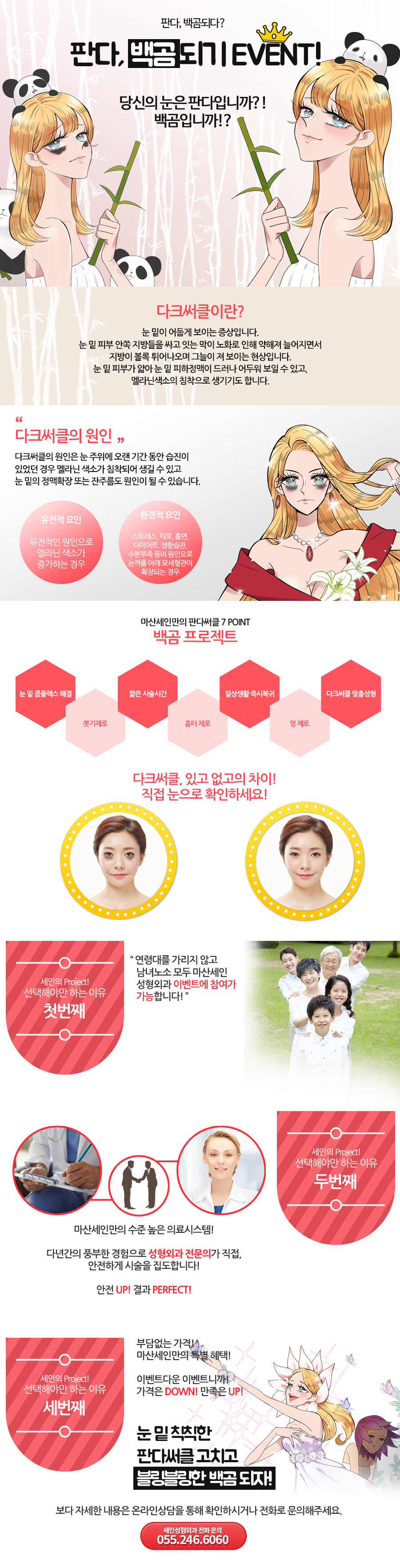 진행완료 | 다크써클 EVENT! 페이지 정보 진행기간 : 2015-10-21 ~ 2016-10-21 작성자 마산세인 작성일15-10-21 14:34 조회9,412회 댓글0건 이전글 다음글 목록 본문 당신의 눈은 판다입니까?! 백곰입니까!? 댓글목록 등록된 댓글이 없습니다. 이전글 다음글 목록